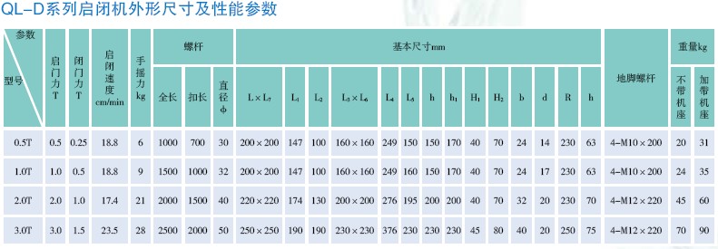 QL型螺桿式啟閉機(jī)系列參數(shù)
