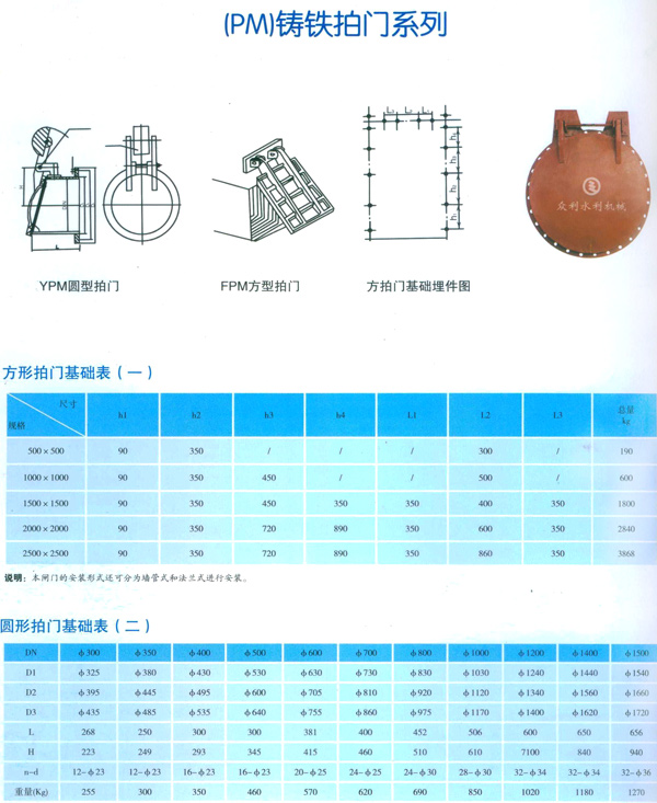 拍門是安裝在江河邊排水管出口的一種單向閥,當(dāng)江河潮位高于出水管口,且壓力大于管內(nèi)壓力時(shí),