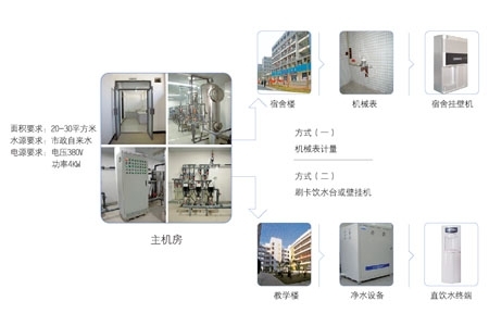 校園直飲水設計方案一:中央凈水設備+飲水終端
